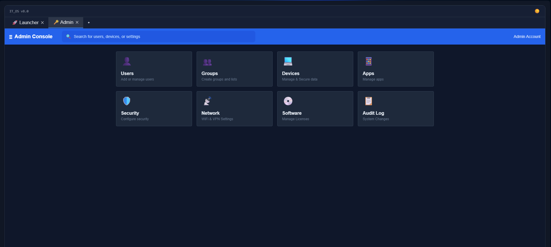 Step into the role of a corporate SysAdmin in IT Support OS, a sleek desktop simulation powered by generative AI. Manage tickets, calm frustrated users, and keep the company network from falling apart—all from a beautiful glass-morphism desktop interface.